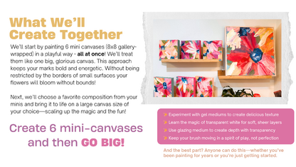 After years of battling perfectionism, I discovered that the true magic in art happens when we stop trying to control the outcome. Through playful techniques and mindful creativity, I’ve spent over a decade developing a process that helps artists like you find confidence, joy, and authenticity in every brushstroke.