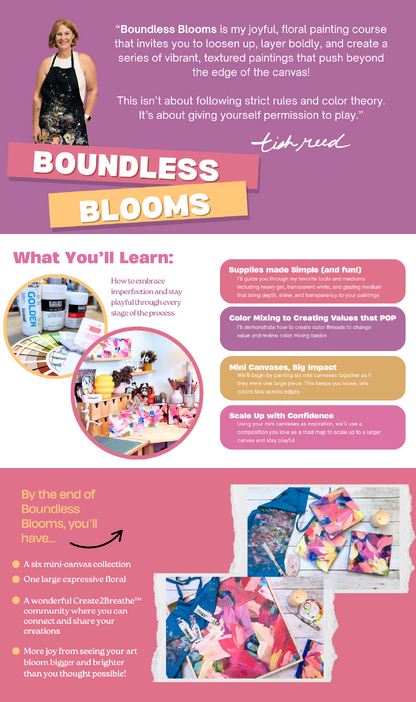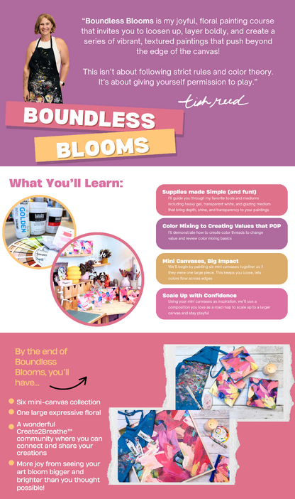 I’m Tish Reed, the artist and founder of CREATE2BREATHE™ — a creative space dedicated to helping artists release pressure, embrace play, and paint from the heart.